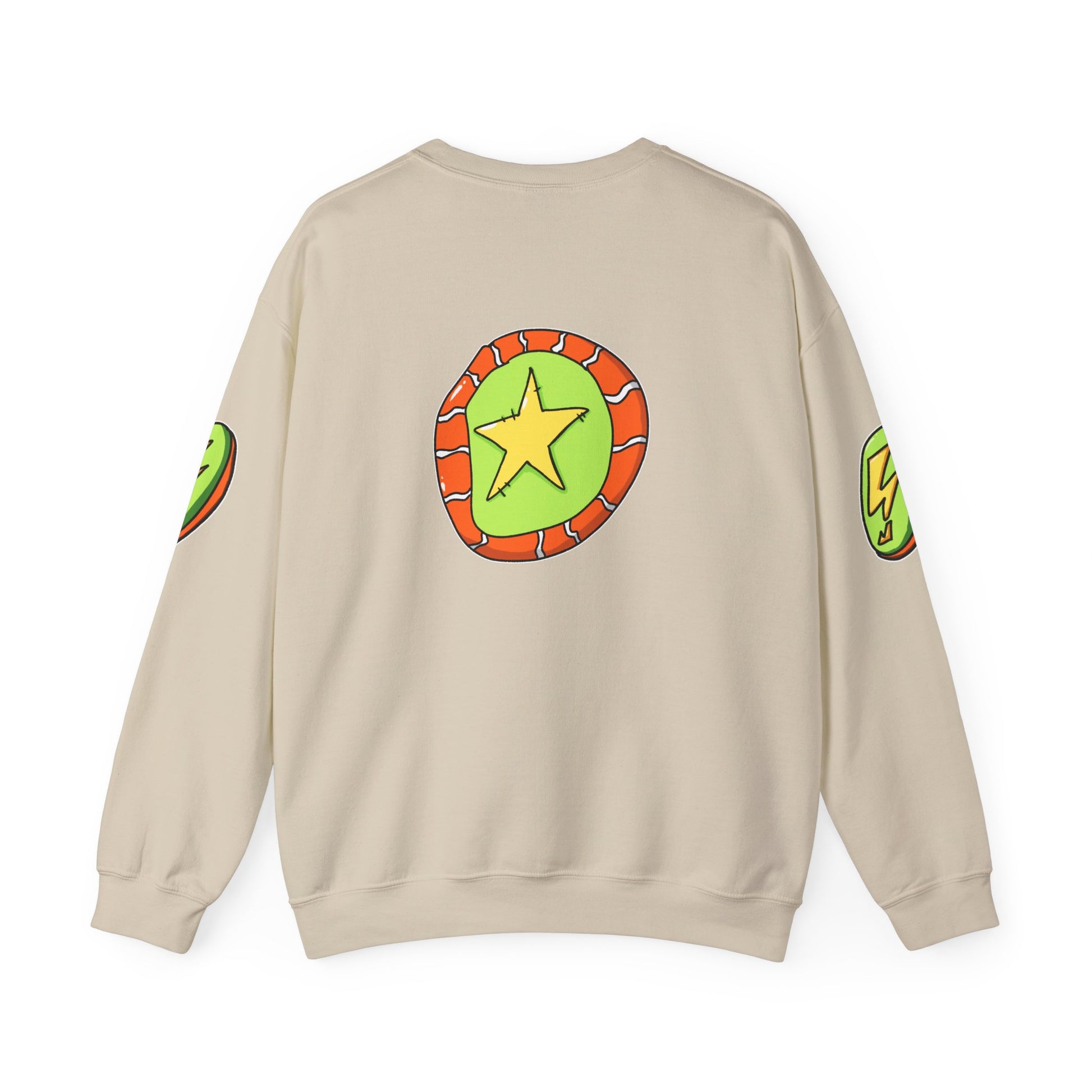 This cozy crewneck sweatshirt carries a playful, hand-drawn vibe—bright, slightly retro badge motifs sit on each sleeve and a larger emblem rests on the back, turning a basic white pullover into a casual statement. The medium-heavy 50/50 cotton-poly fabric feels substantial without being stiff, and the tubular knit body and ribbed collar keep the silhouette clean and comfortable. It wraps around everyday moments: coffee runs, late-night sketching sessions, skate park hangs, or layered under a jacket for cooler evenings. The embroidered or printed accents add texture and character that match a creative, slightly nostalgic wardrobe—wear it when you want something familiar with a little spark.